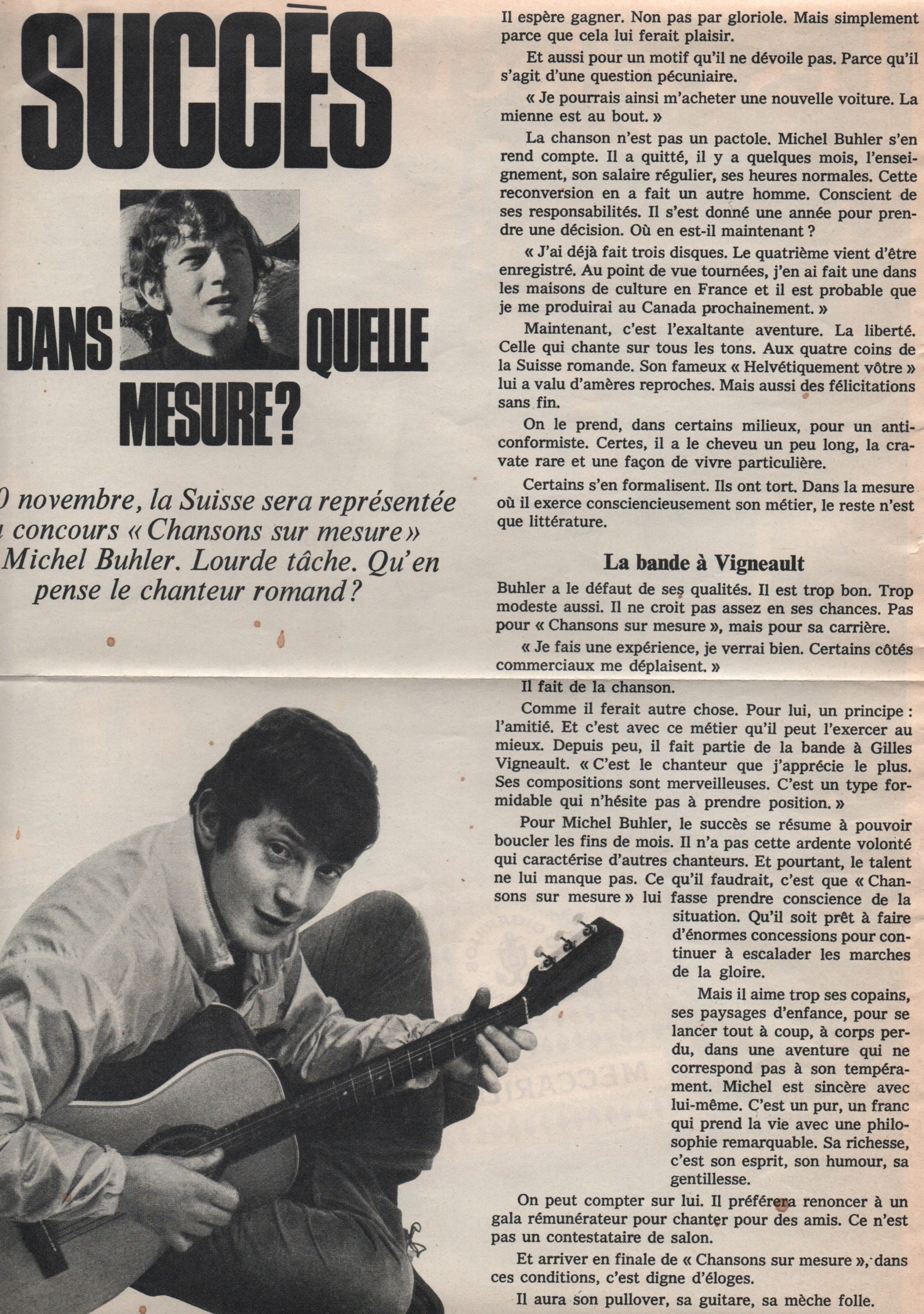 1969. Remporte les deux premiers prix du concours « Chanson sur mesure » organisé par les radios francophones.
