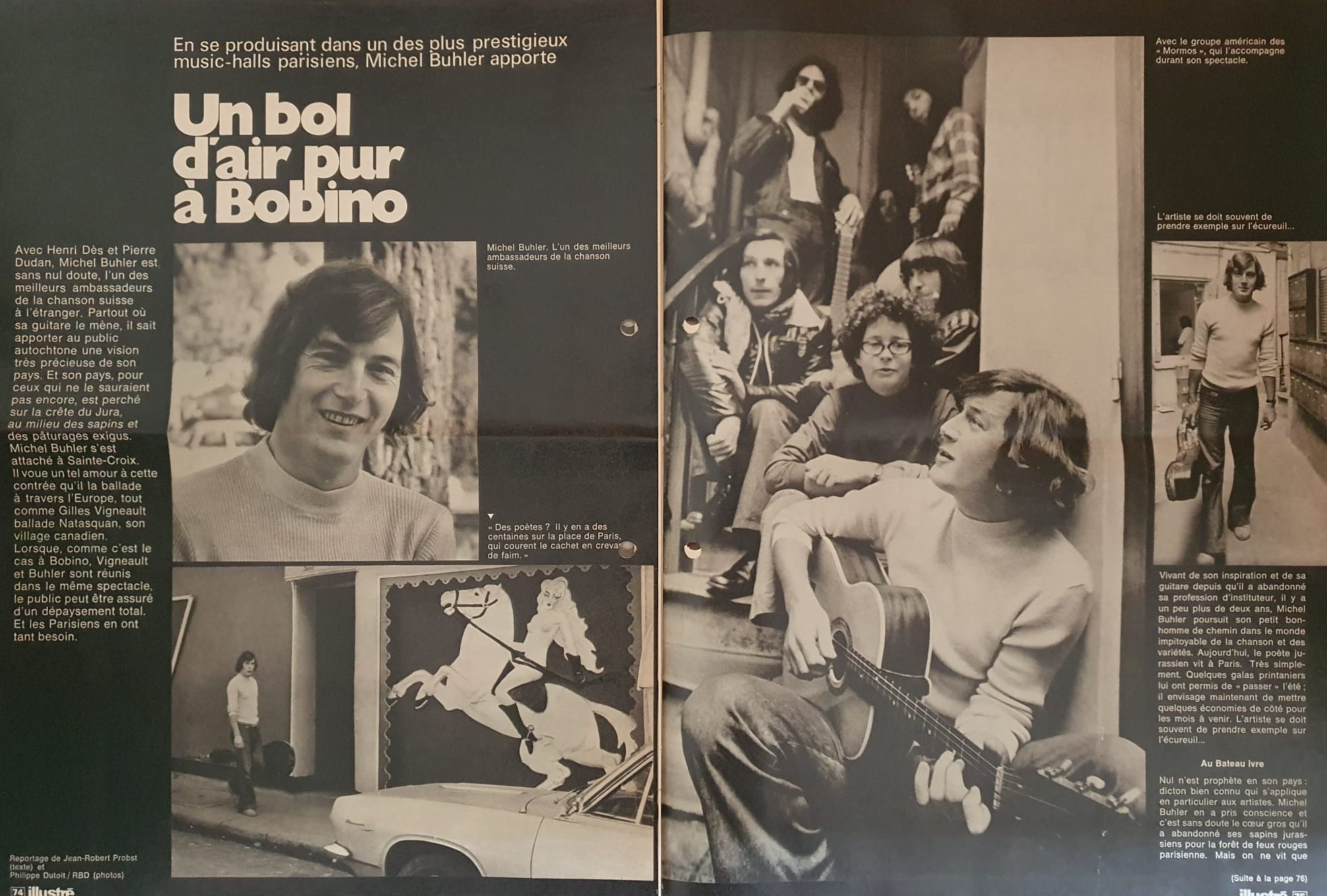 1971. Premier disque 33 tours « Le Pays qui dort » chez Évasion (Lausanne). Spectacle à «Bobino» à Paris, en première partie de Gilles Vigneault, avec François Béranger et le groupe américain «Mormos».