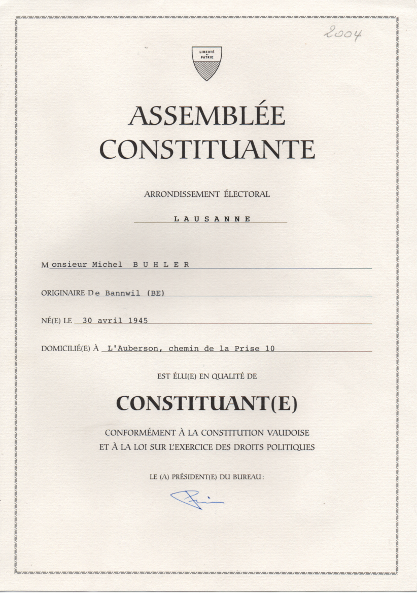 1999. Election à l’Assemblée constituante du canton de Vaud.